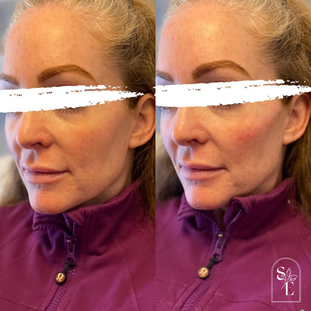 Softer filler in the apple of the cheek so smiles, squints, and laughter lines remain fluid and genuine.