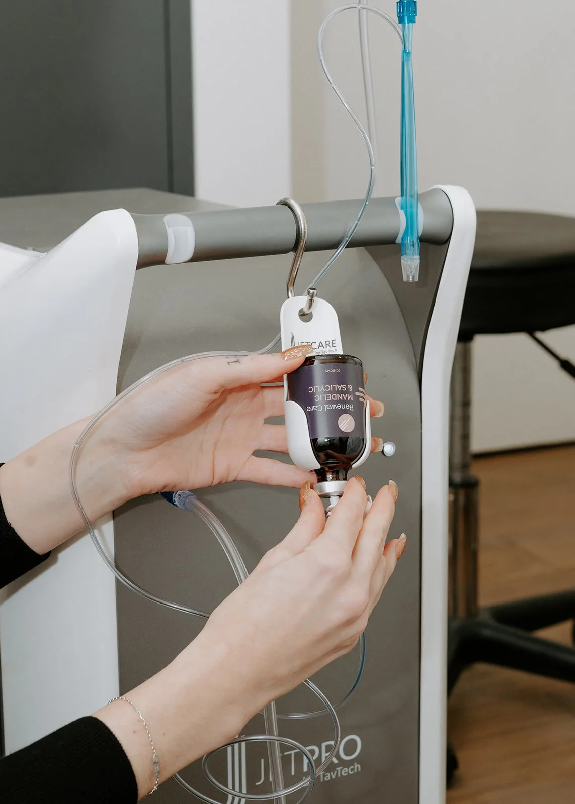 3. Custom Skin Infusions – Depending on your skin’s needs, specific infusions are selected to address concerns like acne, sensitivity, or signs of aging.
