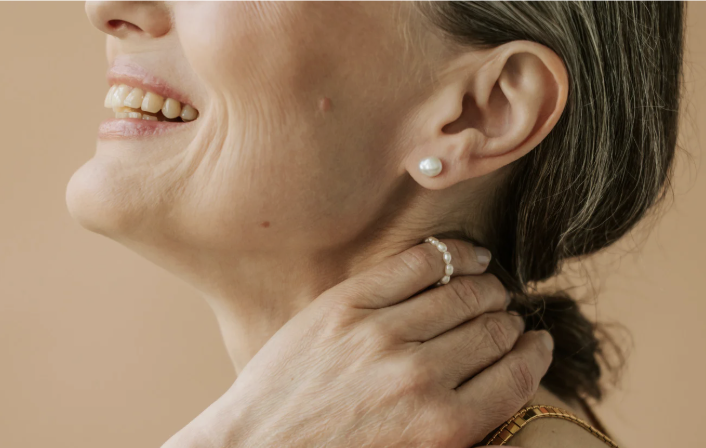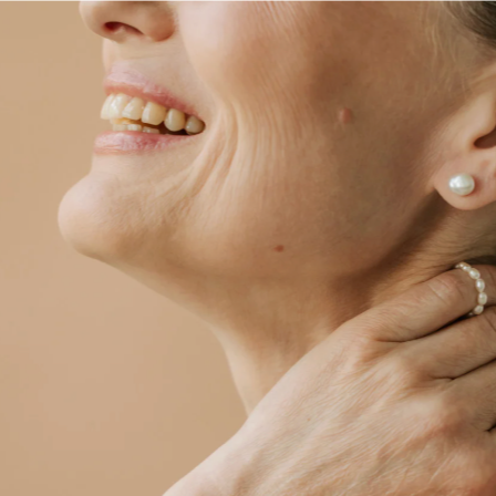 The neck is often one of the first places to show aging. The skin here is naturally thinner and contains fewer collagen and elastin fibers than the face, making it more prone to crepey texture, laxity, and horizontal lines over time.